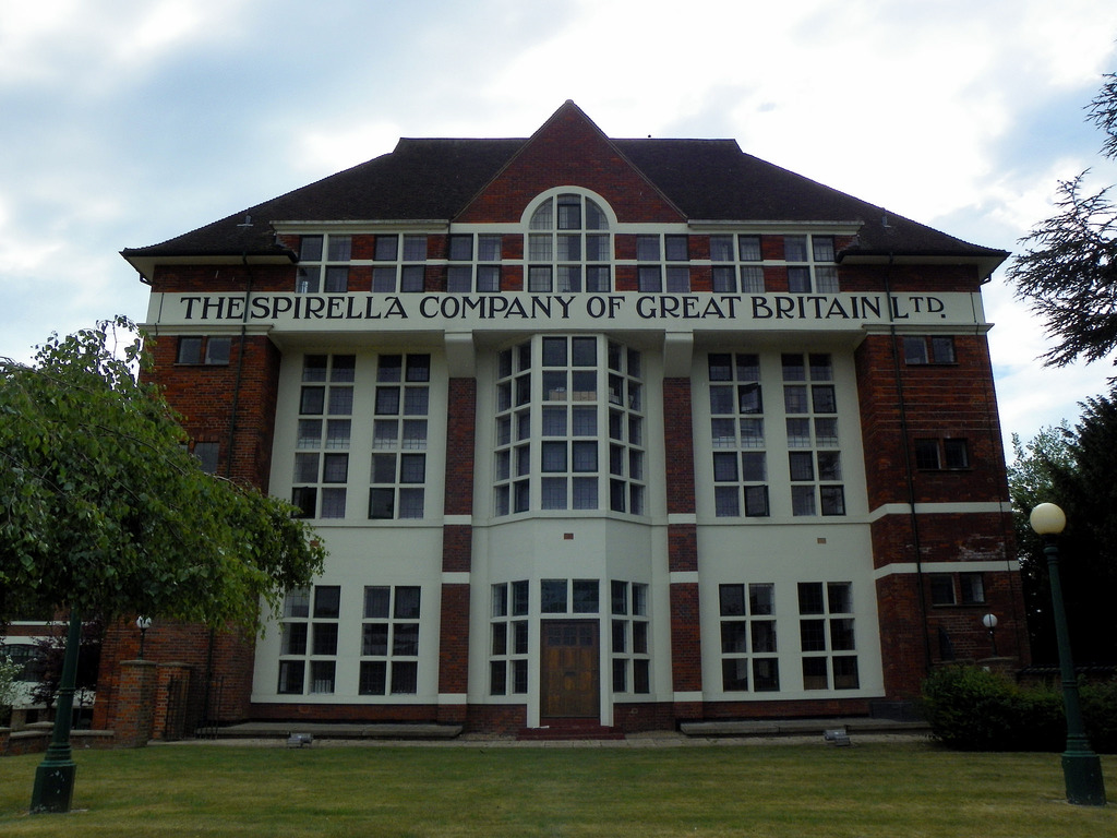 The industrial heart of the town for many years is the Spirella corset company, opened in 1910 and housed in temporary sheds, the business soon moves to a spectacular Arts and Crafts inspired factory. Paradoxically the ‘quaint’ Arts and Crafts style is up-scaled to an industrial size; however, the factory is a triumph and is known by many as the ‘factory of beauty’ and ‘the factory in a garden’. Not only is the building an aesthetic success but Spirella is one of the largest employers in Letchworth in the early years. The company has a philanthropic approach to its workforce, providing health and education benefits as well as a thriving social life too. The company prides itself on the hygienic and health benefits of its product, especially the flexible patented Spirella stay, the quality of the product ensures the company’s success and it produces corsets and other undergarments until its closure in 1989.